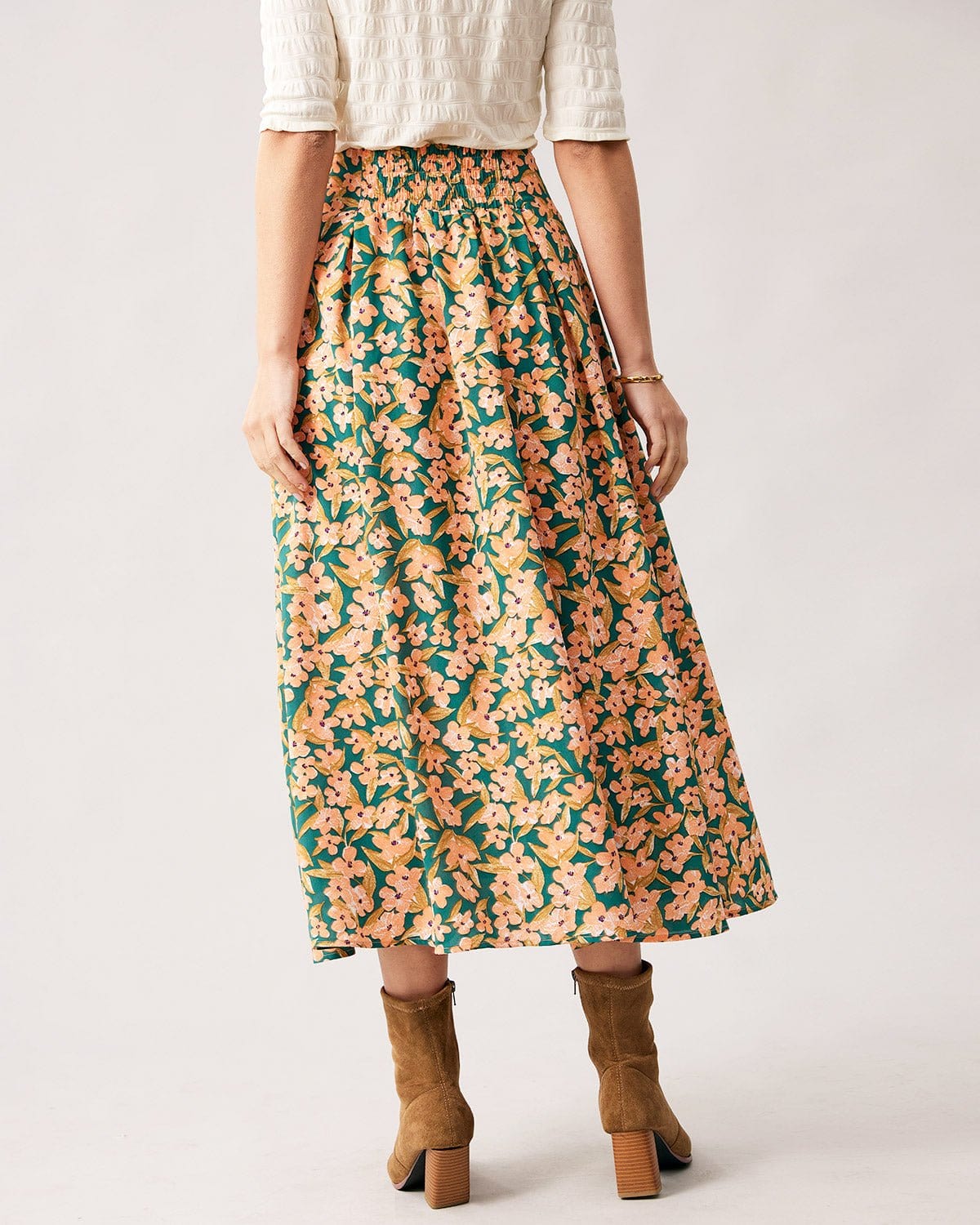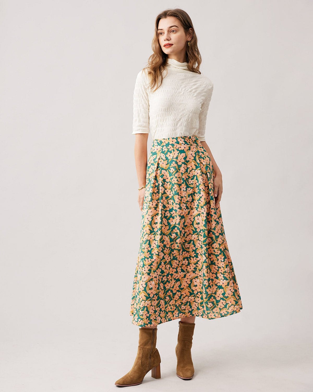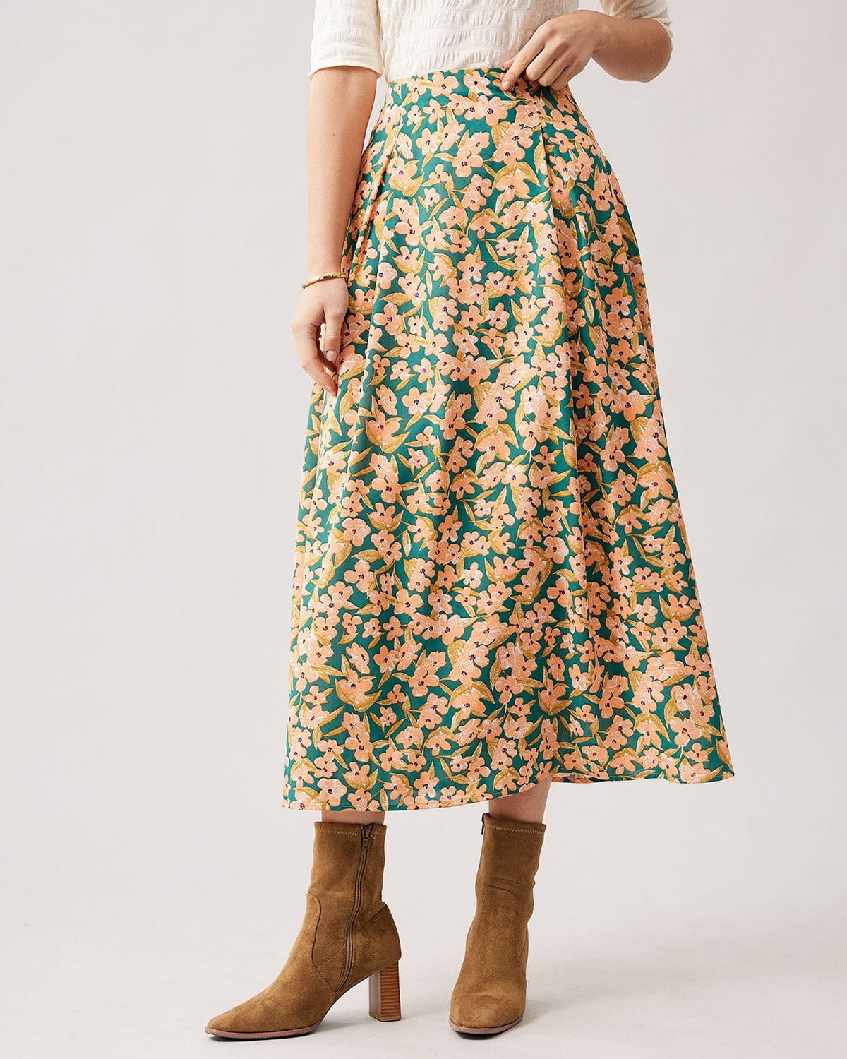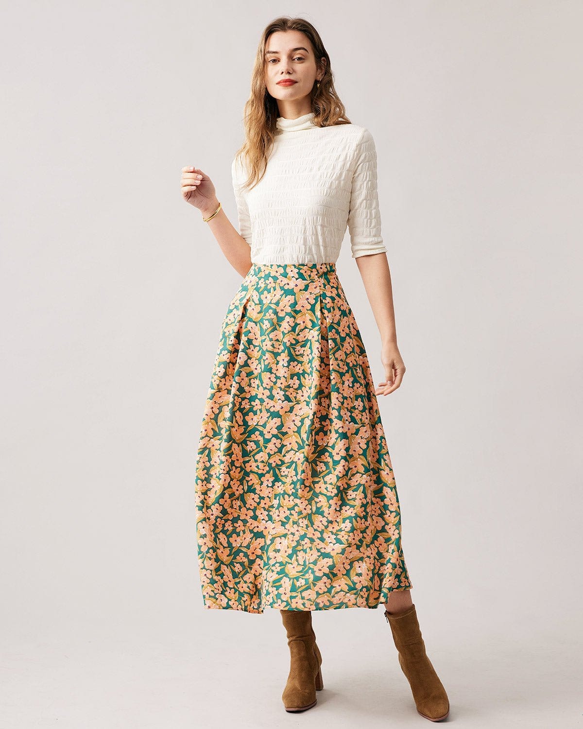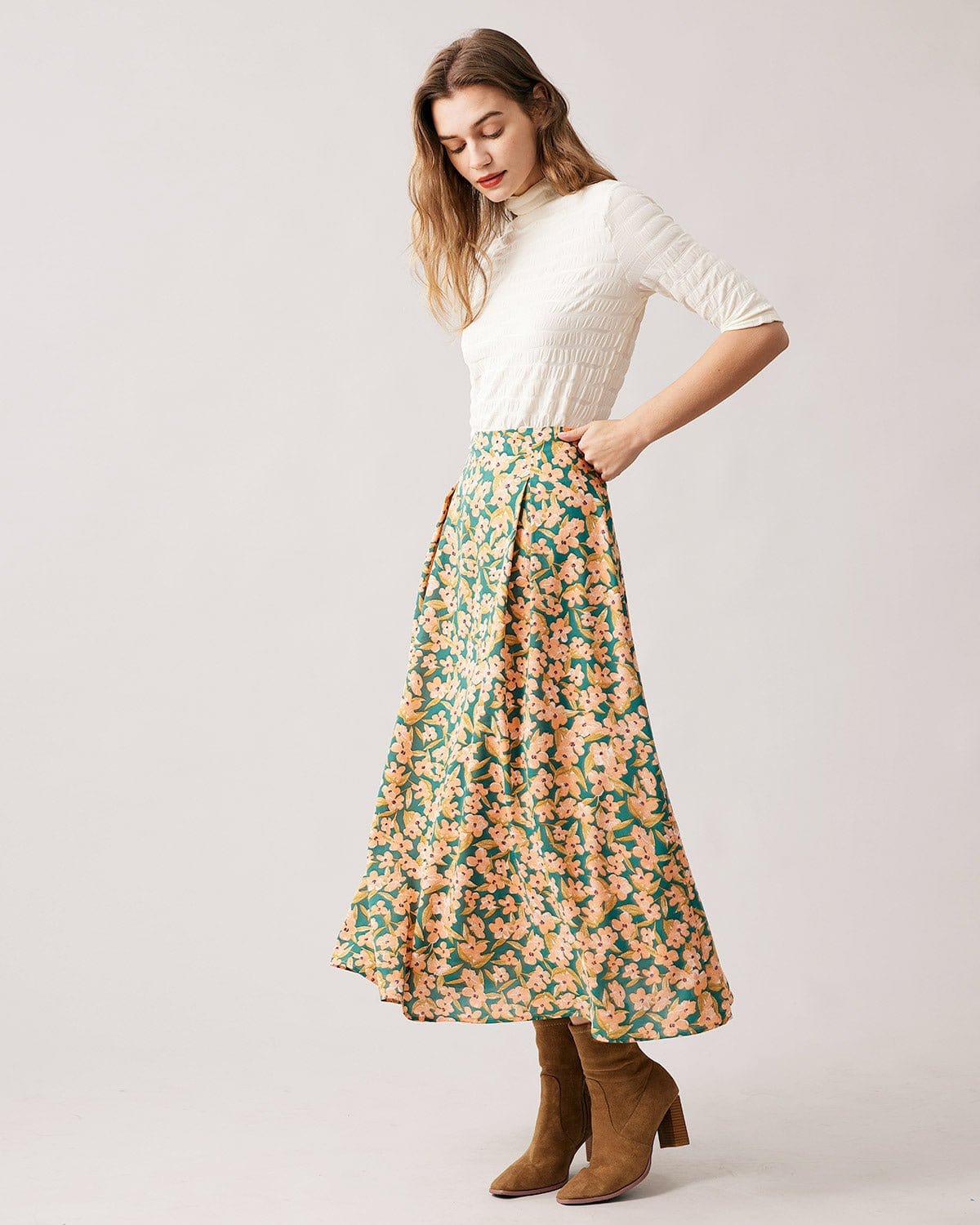The High Waisted Pleated Floral Midi Skirt